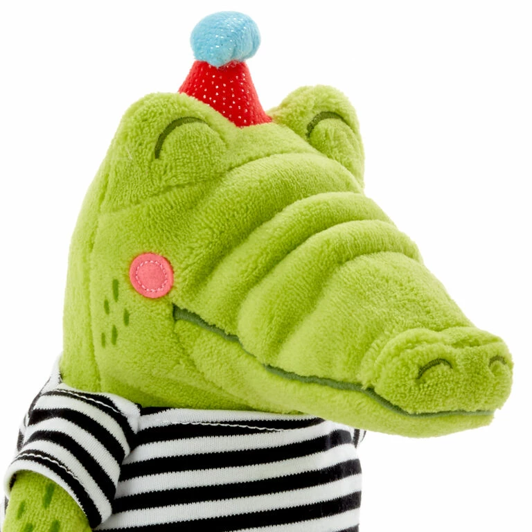 - Alligator stuffed animal is made of plush fabric.