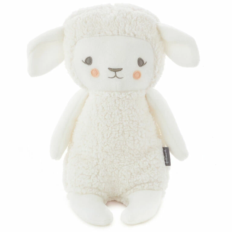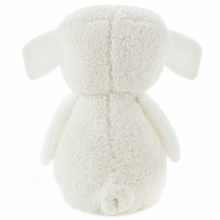 - White lamb stuffed animal is crafted from soft plush fabric with embroidered accents.