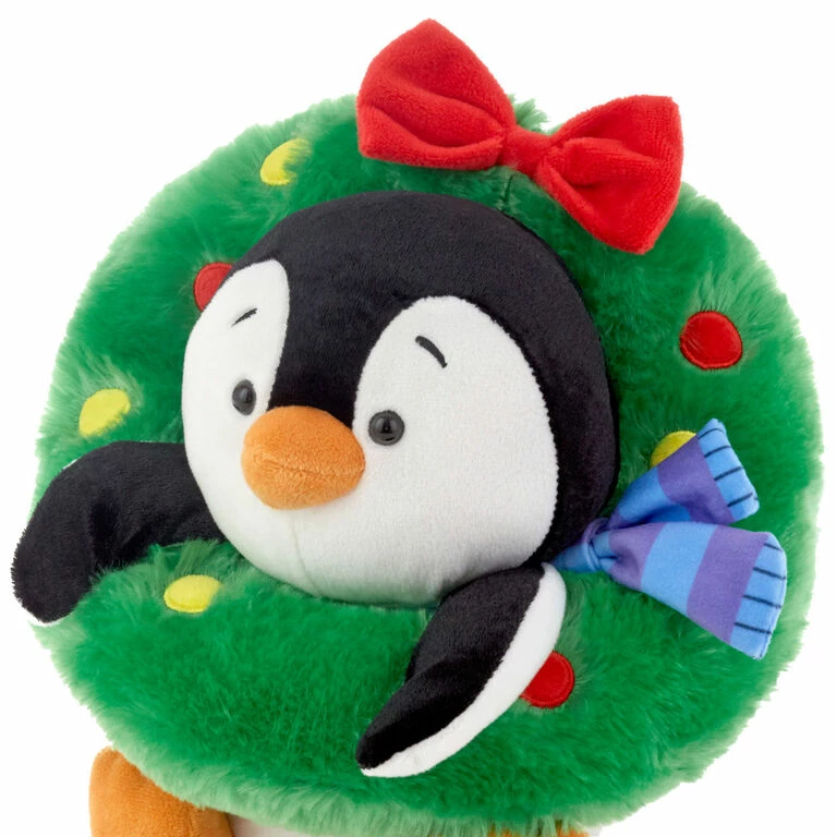 - Penguin stuffed animal with green holiday wreath features lights, music and motion. Musical Playful Penguins plush coordinates with our Playful Penguins Book and Playful Penguins Puzzle (both sold separately).